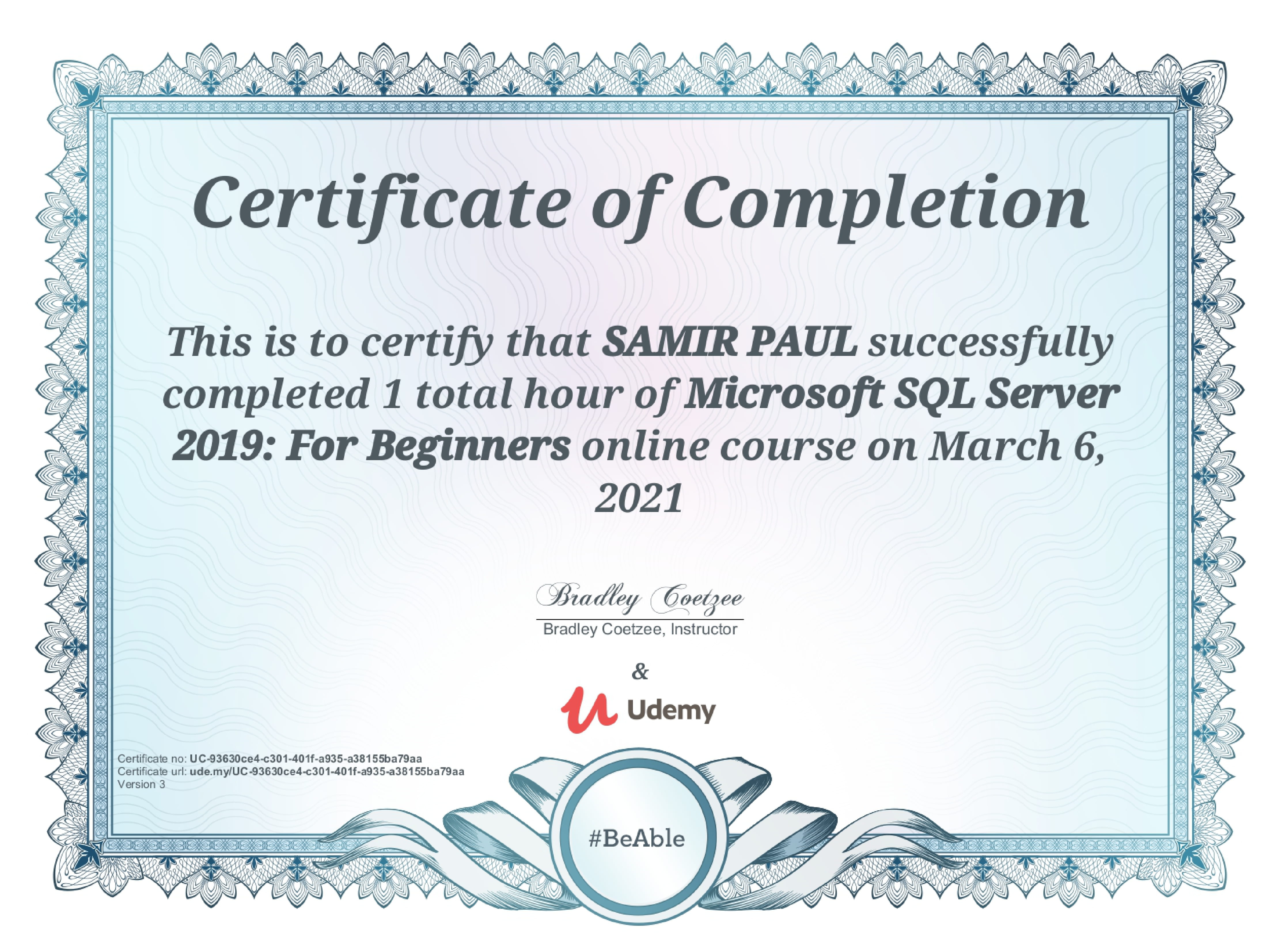 Udemy: Microsoft SQL Server 2019: For Beginners - UC-93630ce4-c301-401f-a935-a38155ba79aa